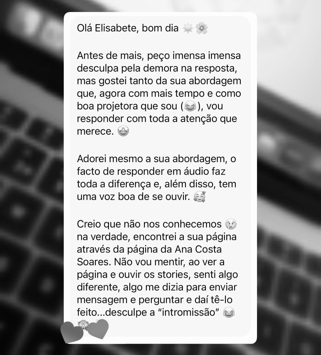 Faço-o com leveza, sensibilidade e empatia.