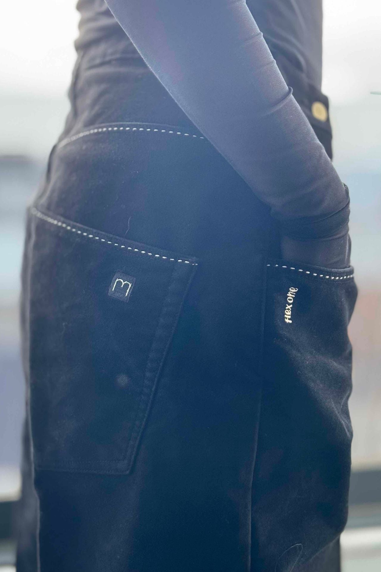 As nossos calças Flex One em veludo estruturado  100% algodão. Pretas com contraste em linha branca. Detalhes que importam e fazem a diferença.