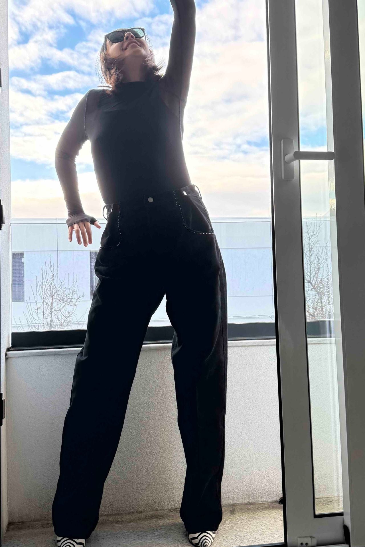 Serão as tuas calças favoritas para looks mais casuais ou mais formais. Oferecem multiplicidade na hora de as vestires e criares a tua identidade. Os botões e o elástico na cintura permitem que estas calças, de tamanho único, sirvam do tamanho 34 ao 44 sem nunca perderes estilo. Podes usá-las de cintura subida, média ou descida, podes usa-las com prega ou sem prega ou até na tua gravidez. Segue as nossas sugestões ou surpreende-nos com a tua criatividade.